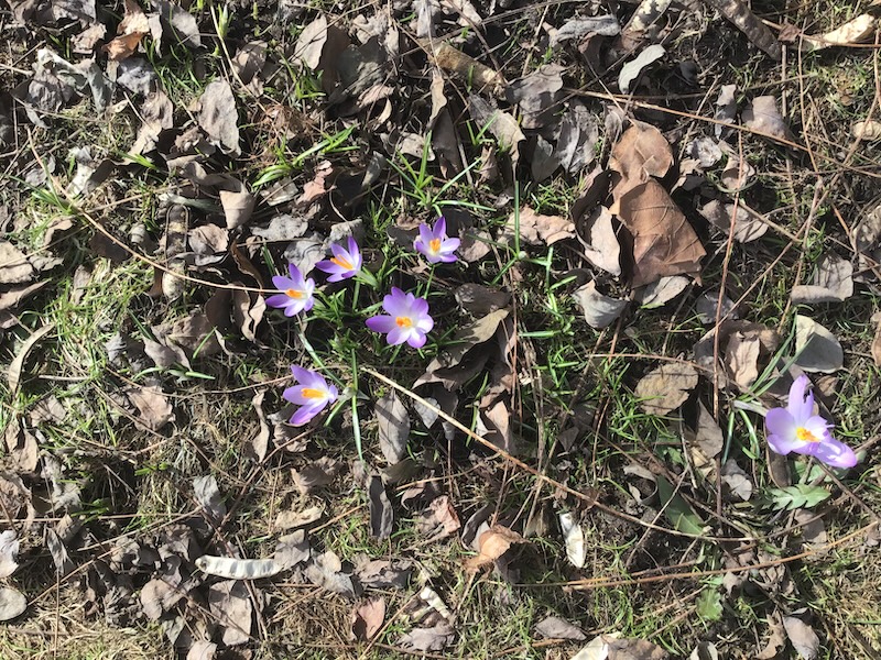picture of crocuses blooming in my front lawn there was
